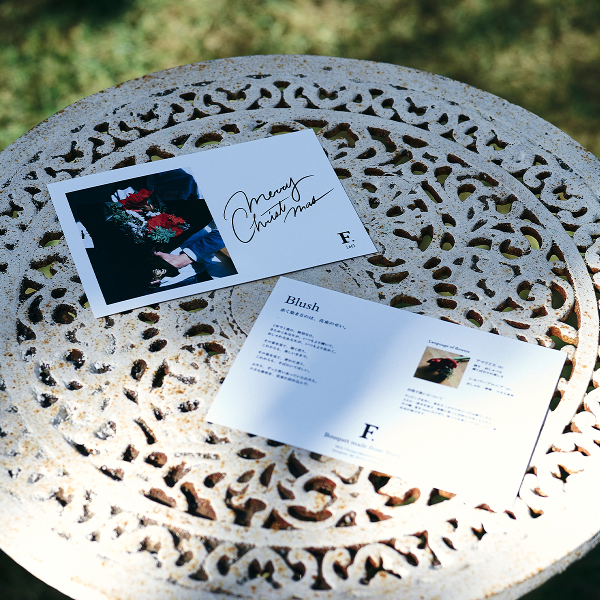 すべての花束に、F. [éf]オリジナルのストーリーカードを添えてお届けします。