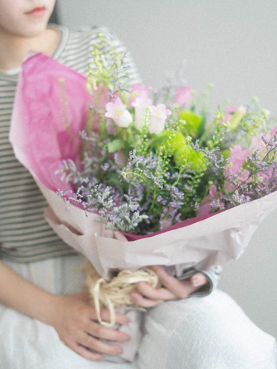 母の日をはじめ、大切な方への感謝の気持ちを込めて贈りたくなる、心温まる花束です。